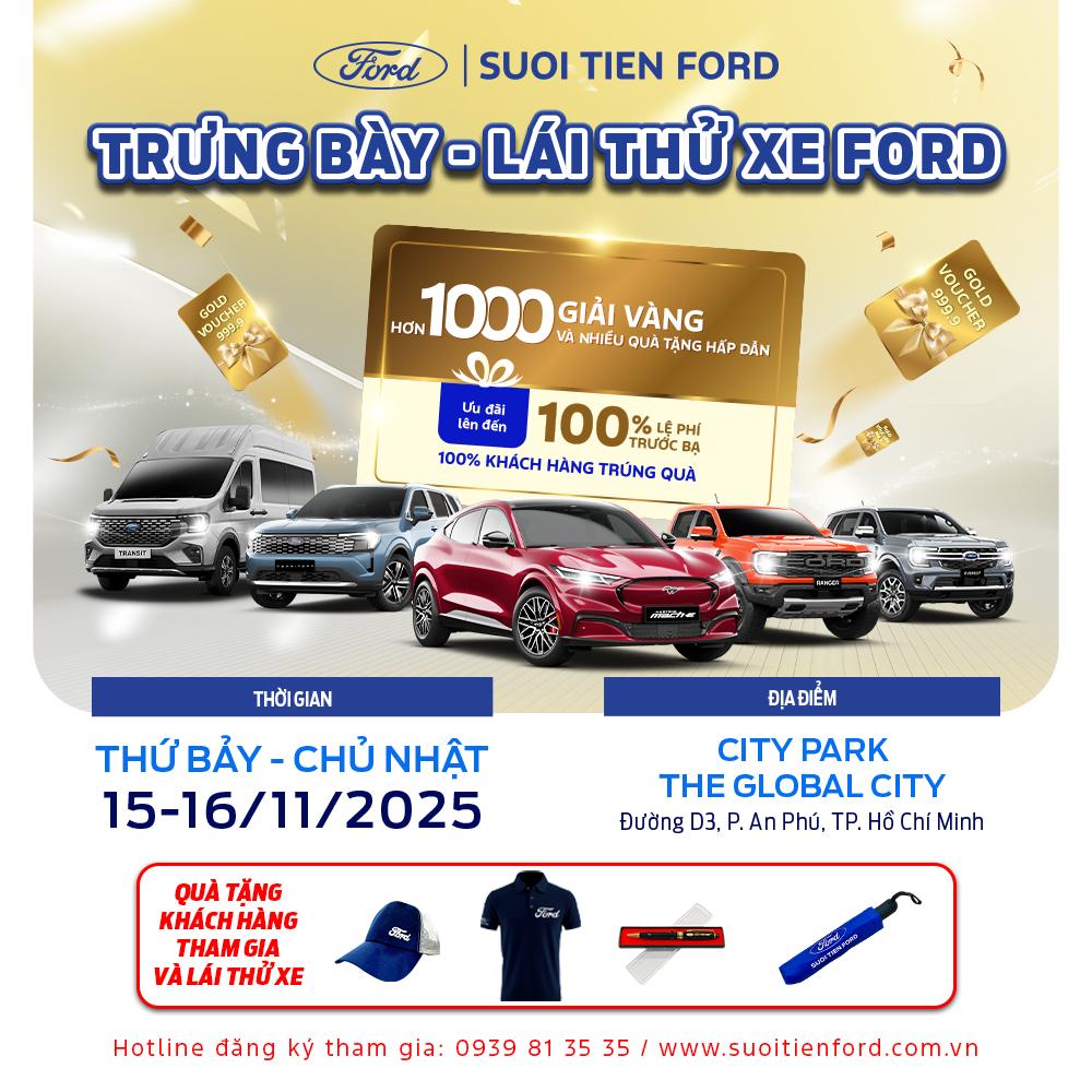 Chỉ trong 2 ngày duy nhất 28–29/11/2025, Suối Tiên Ford 5S mang đến cho Quý khách hàng loạt ưu đãi cùng quà tặng “khó tin nhưng có thật”: